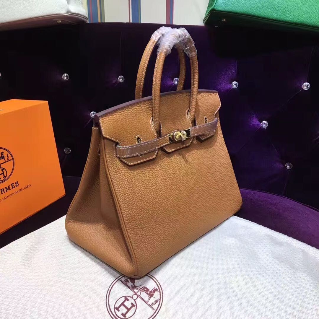 Hermes Birkin 30cm Togo Leather Handbags Light Coffee Gold