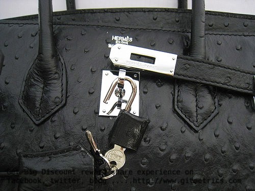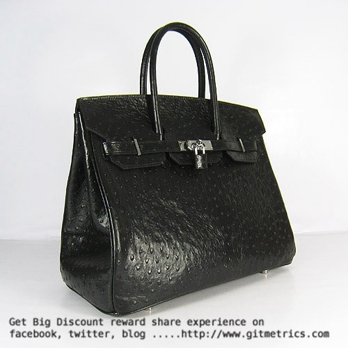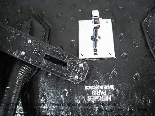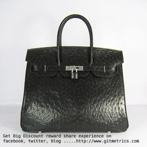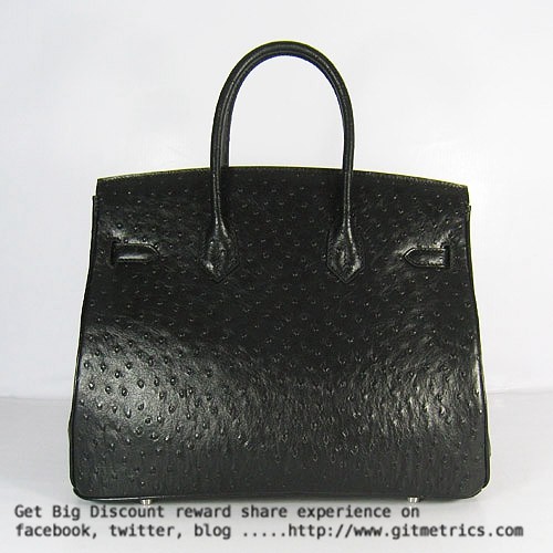 Hermes Birkin 35cm Ostrich Veins Handbags black silver