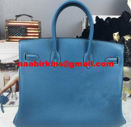 Hermes Birkin 35cm Togo leather Handbags blue silver