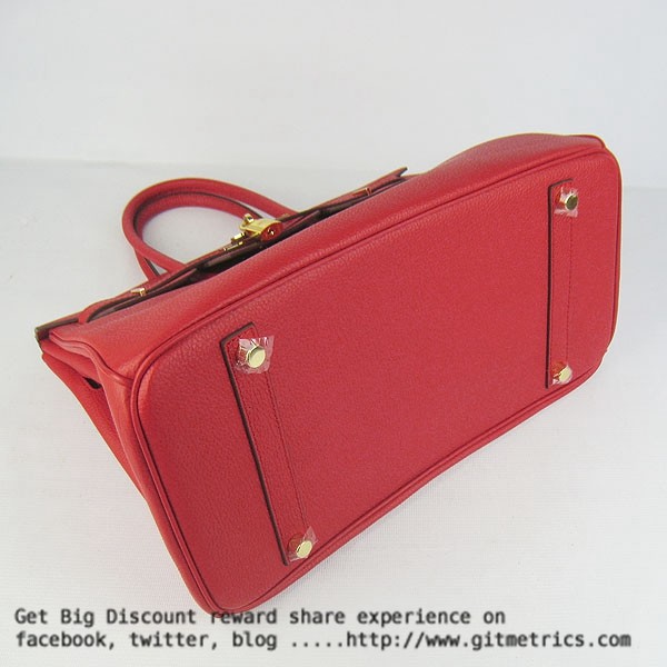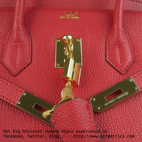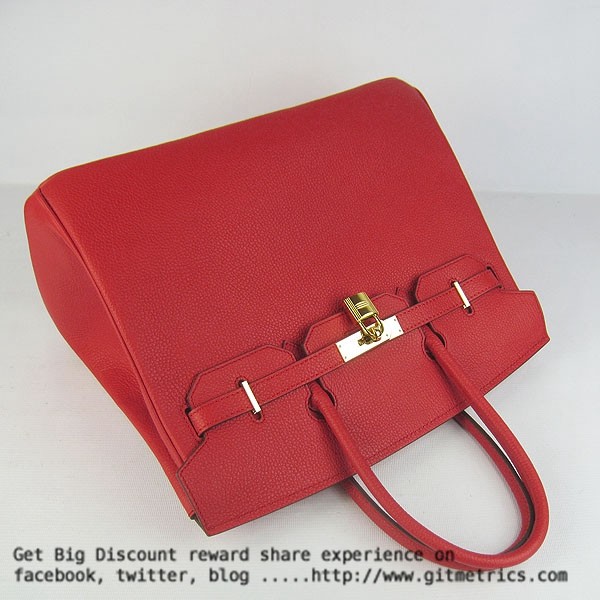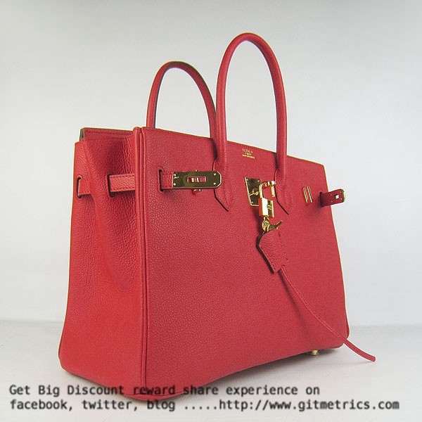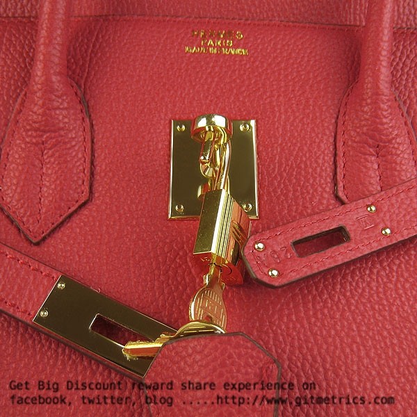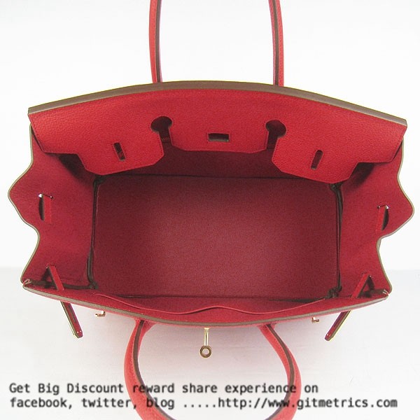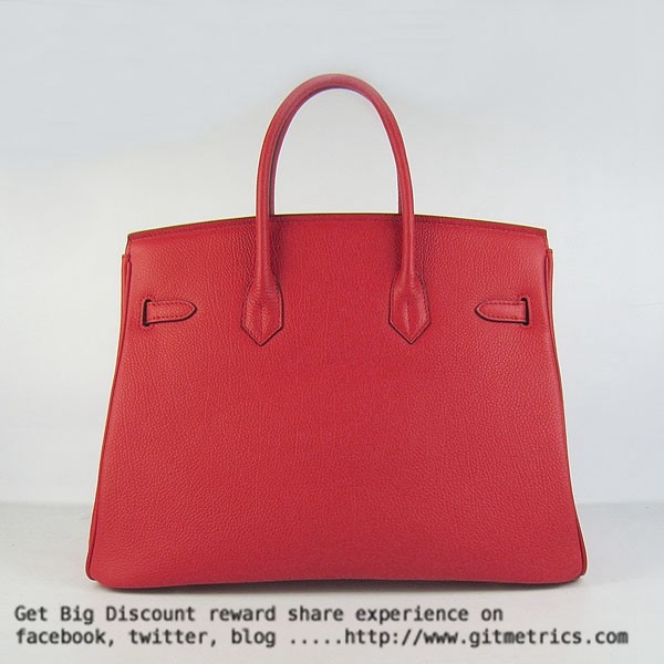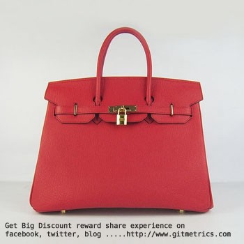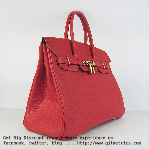 • Hermes Birkin 35cm cattle skin vein Handbags red golden