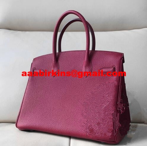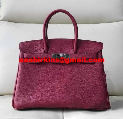 Hermes Birkin 30cm Togo leather Handbag burgundy silver
