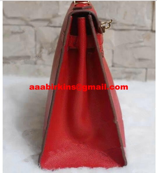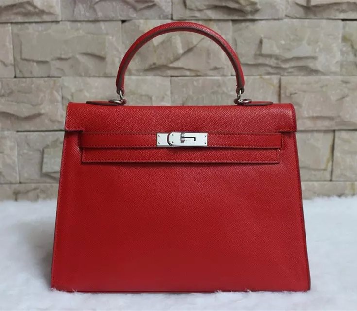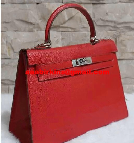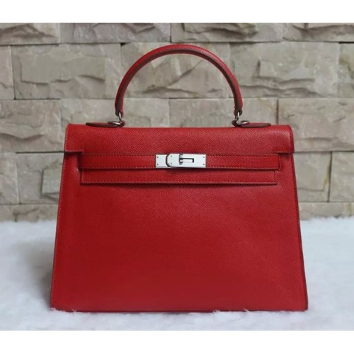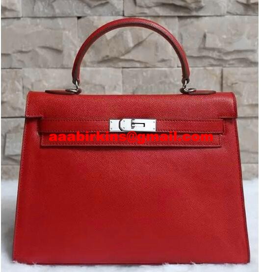Hermes Kelly 32cm Epsom Leather Handbag Red Silver