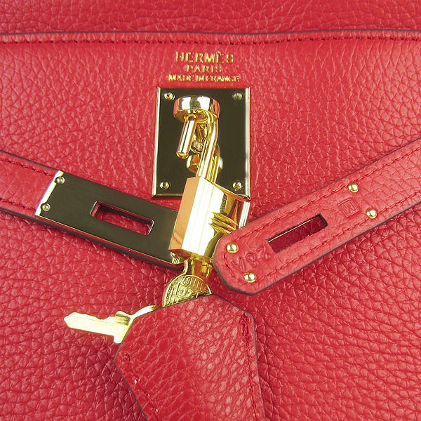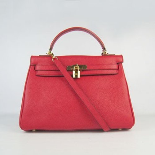 Hermes Kelly 32cm Togo Leather handbag red/golden