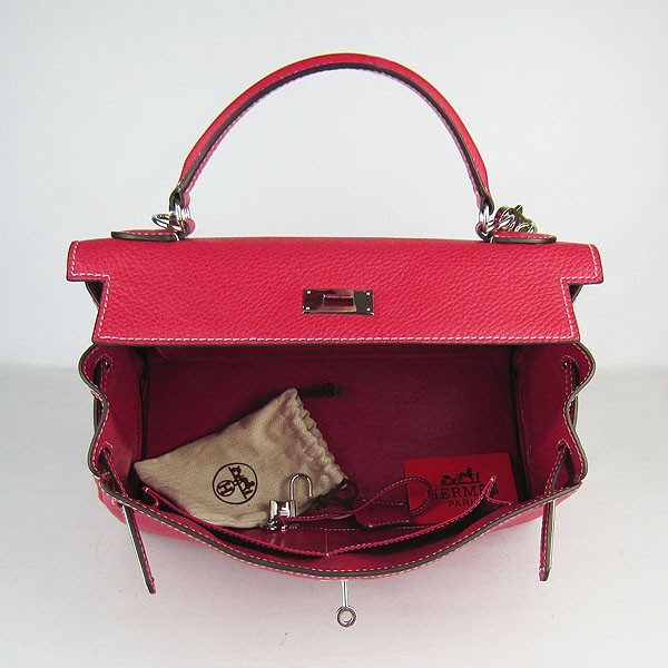 This Hermes Kelly 32cm Togo Leather handbag 6108 red/silver comes with:Hermes lock,keys,clochette,sleepers,care booklet,rain protection,tags and copy of the genuine receipt from an official Hermes store.