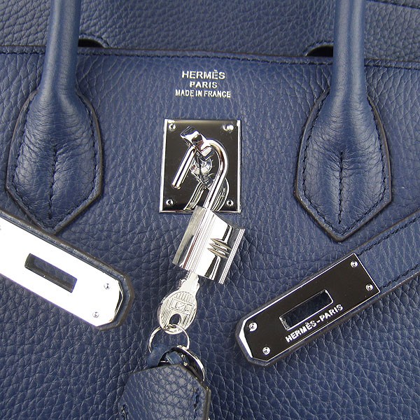Hermes Birkin 30cm Togo leather Handbags dark blue silver