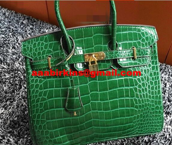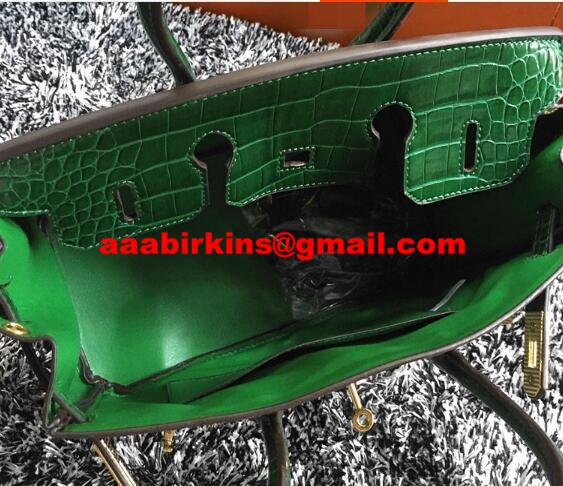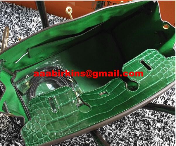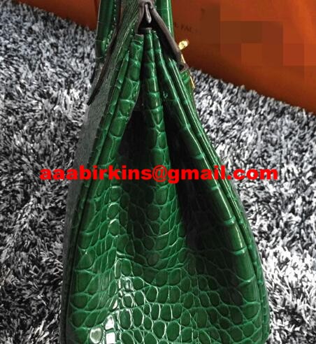 Hermes Birkin 35cm Handbag Crocodile Leather Green Gold