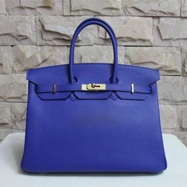Hermes Birkin 35cm Togo leather Handbag electric blue gold