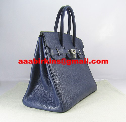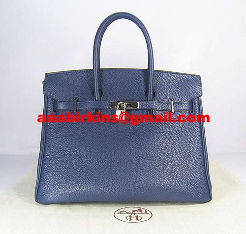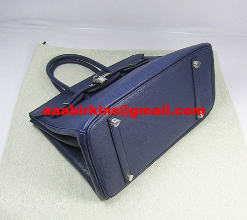 Hermes Birkin 35cm Togo leather Handbags dark blue silver