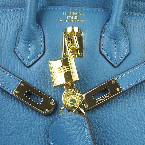 Hermes Birkin 25cm Handbag 6068 Blue golden