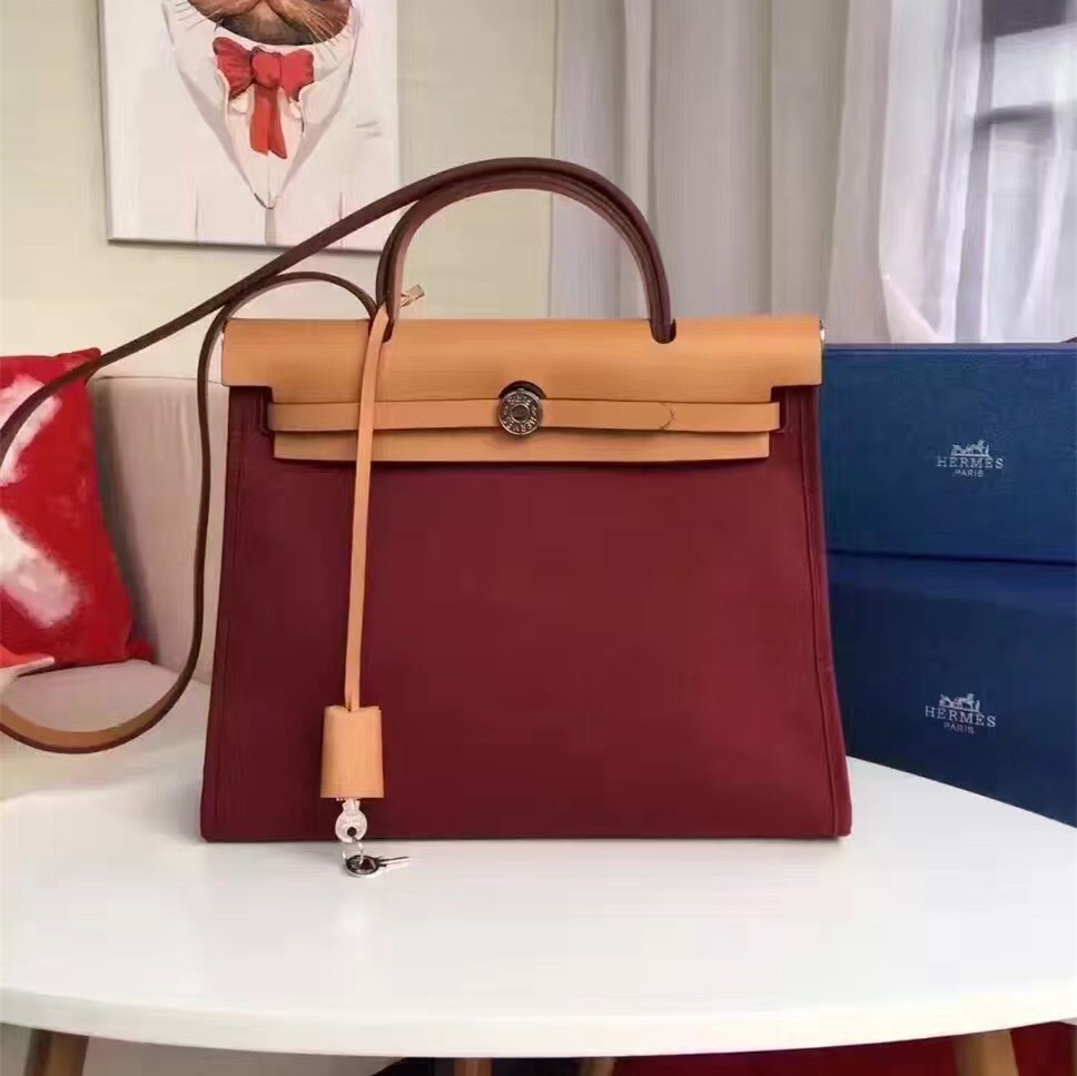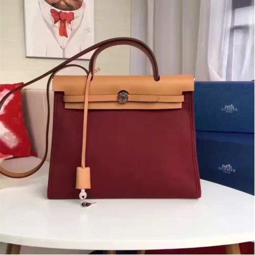 Hermes Herbag 31cm Burgundy Canvas Bag