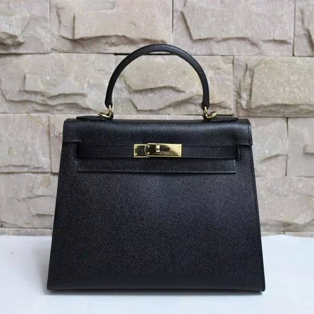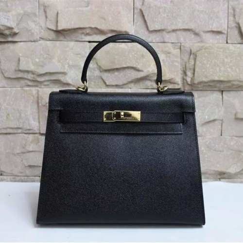 Hermes Kelly 28cm Epsom Leather Handbag Black Gold