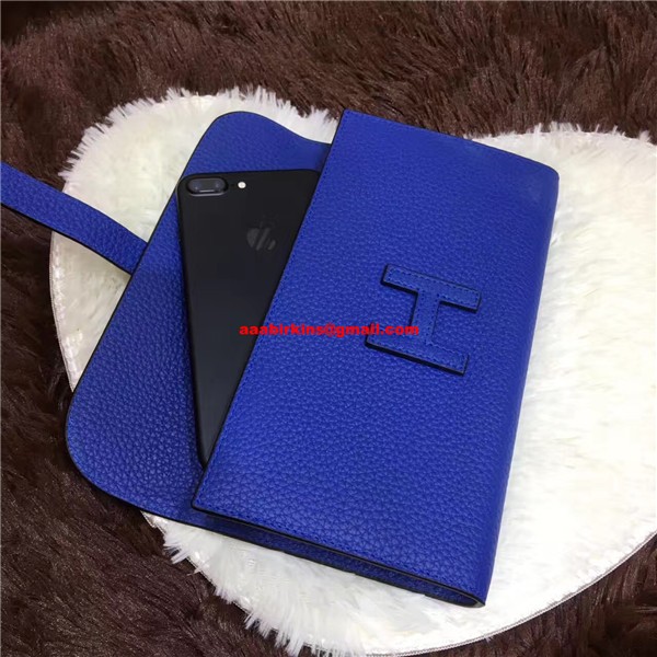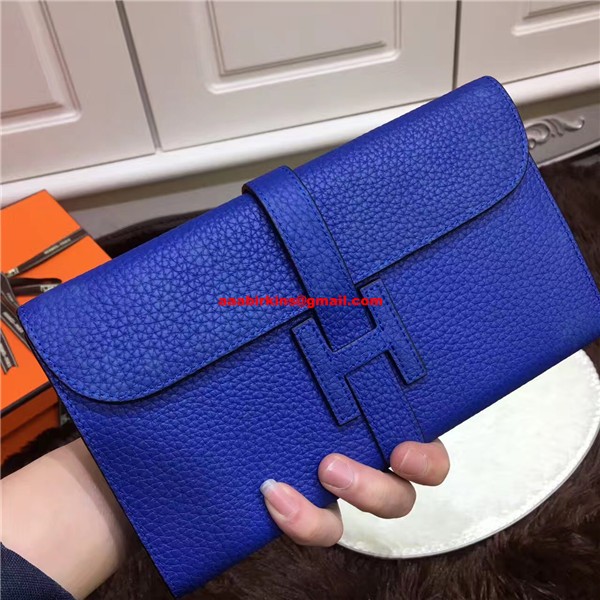 Hermes Jige Wallet Togo Leather Electric Blue