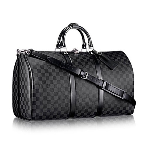 • Louis Vuitton N41413 Keepall Bandouliere 55 Duffel Bag Damier Graphite Canvas