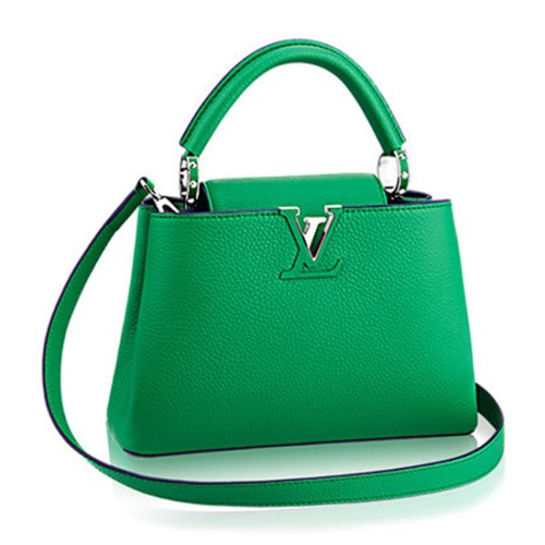 The fashionable mini size of Capucines BB lends anintense pop of contrasting colors to wardrobe styles from classic to daring.Finished with shiny silver color accents, the Capucines BB comes with aremovable long shoulder strap for casual shoulder or cross-body wear.
