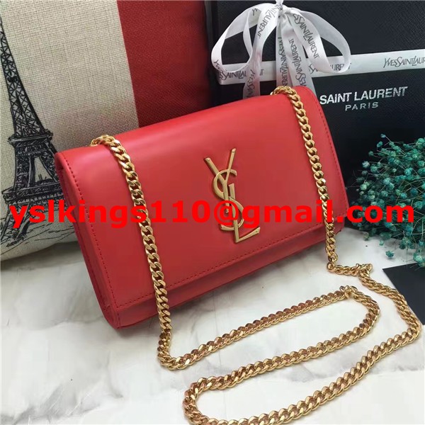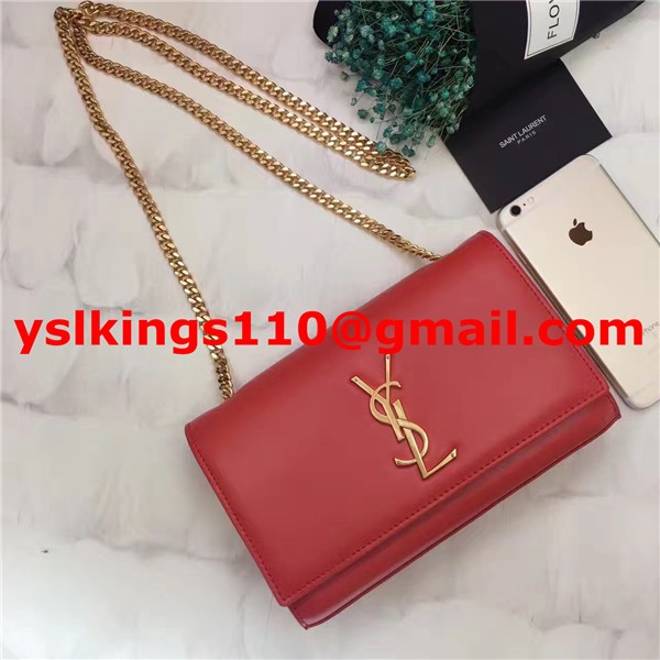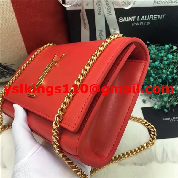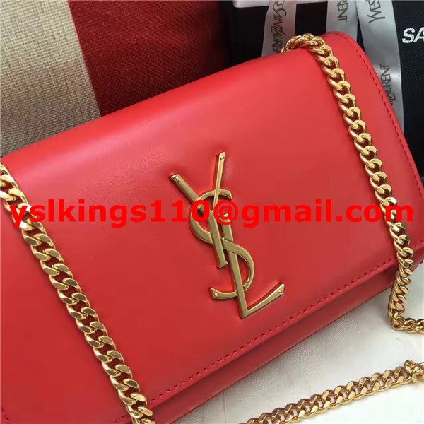 YSL Smooth Leather Chain Bag 22cm Red