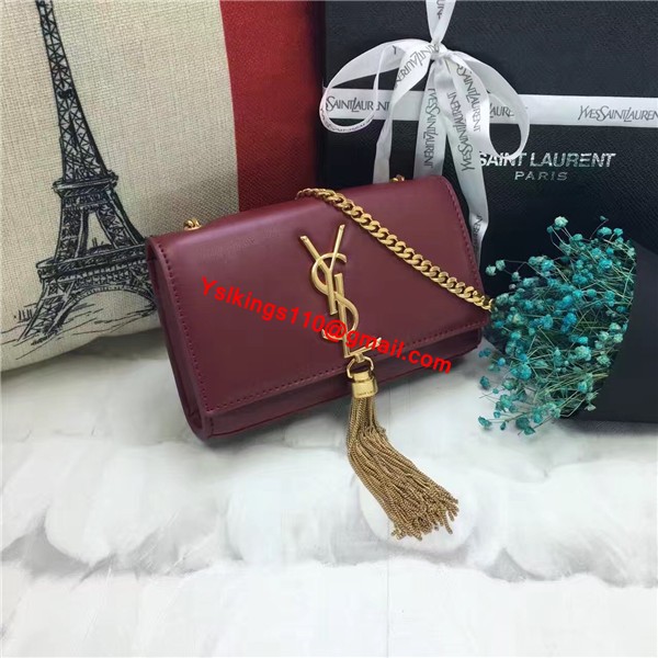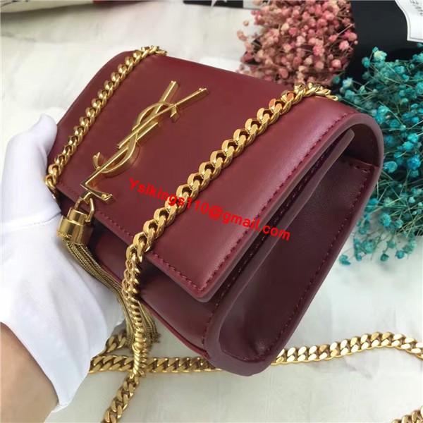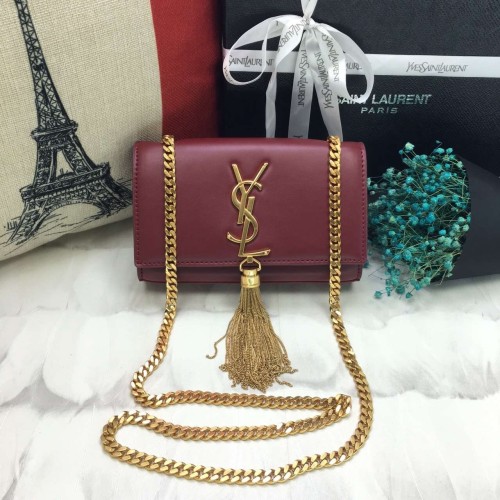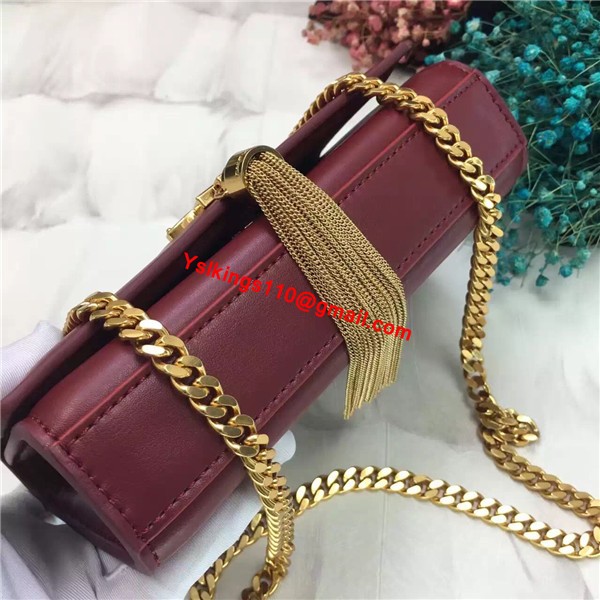 YSL Small Tassel Chain Leather Bag 17cm Burgundy