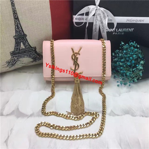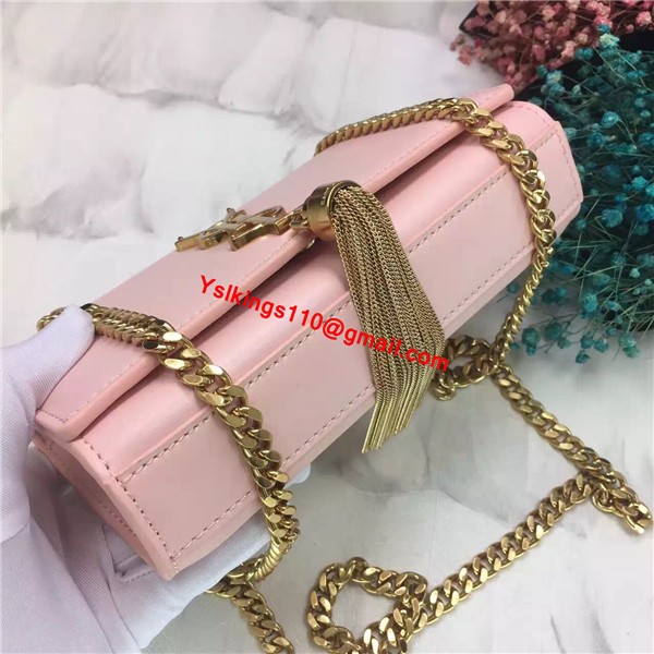 YSL Tassel Chain Bag 22cm Smooth Leather Pink Gold