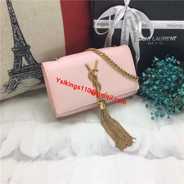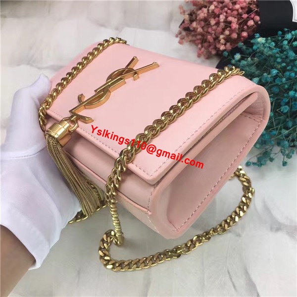 YSL Small Tassel Chain Leather Bag 17cm Light Pink Gold