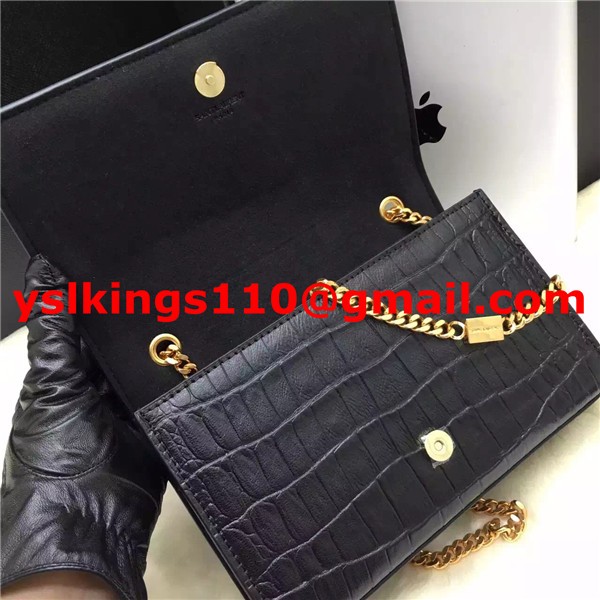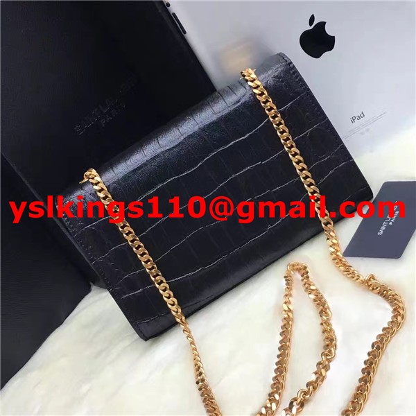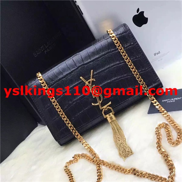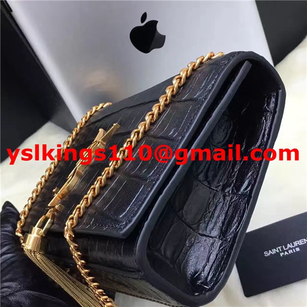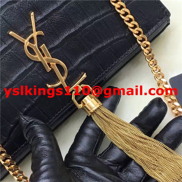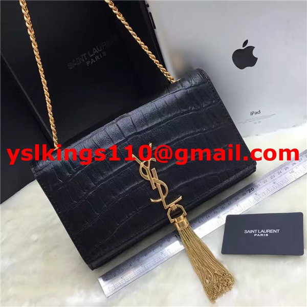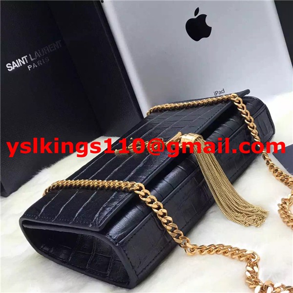 YSL Tassel Chain Bag 22cm Croco Black Gold