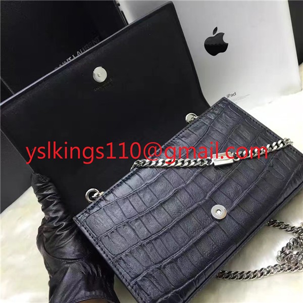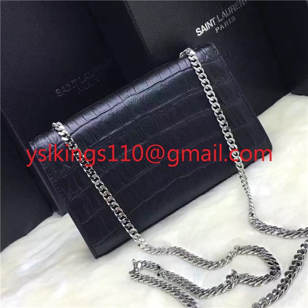 YSL Clutch 27cm Croco Leather Black Silver