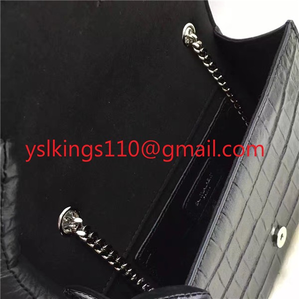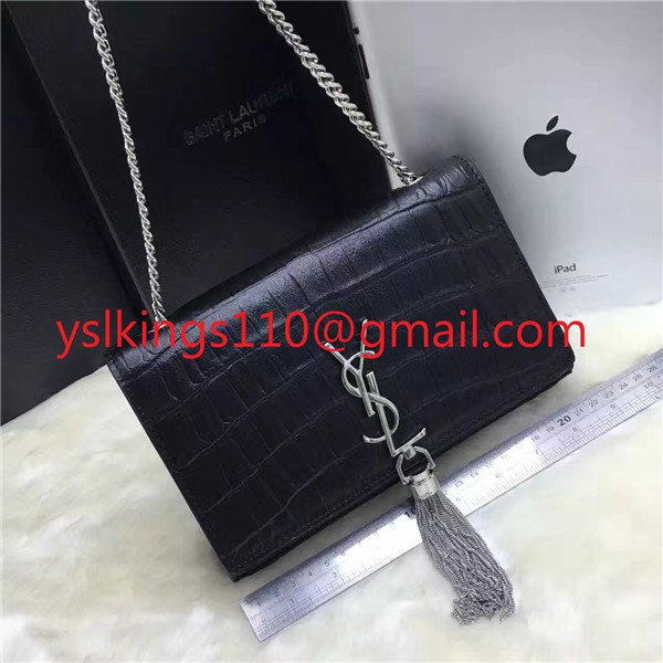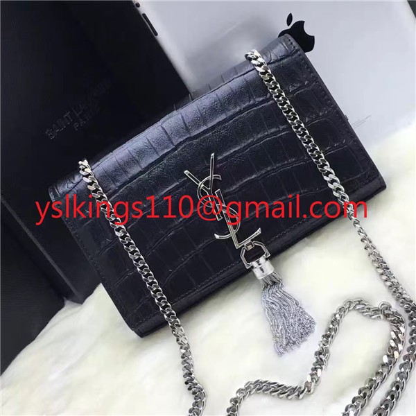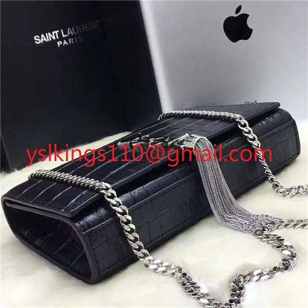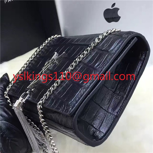 YSL Tassel Chain Bag 22cm Croco Black Silver