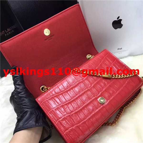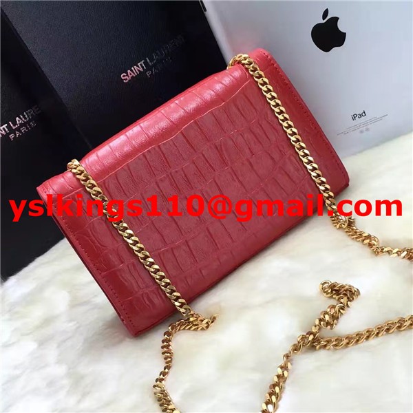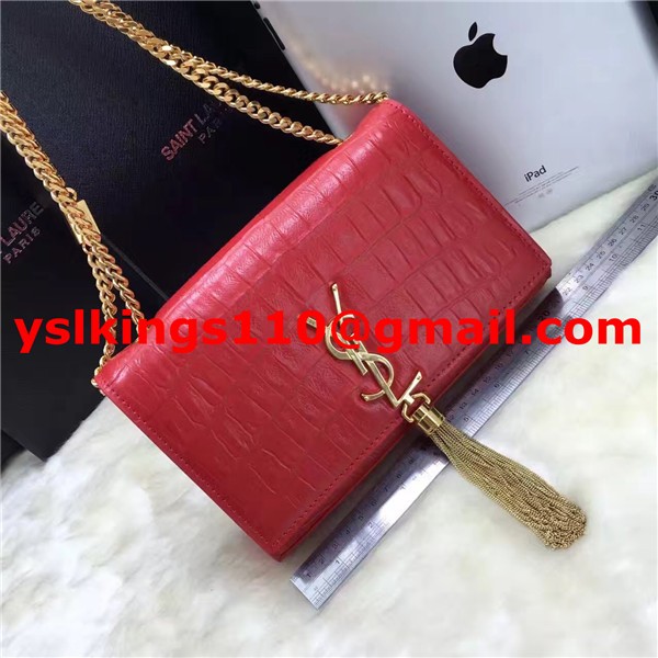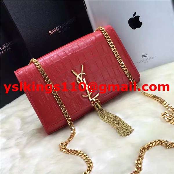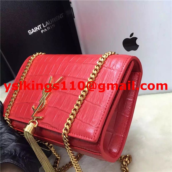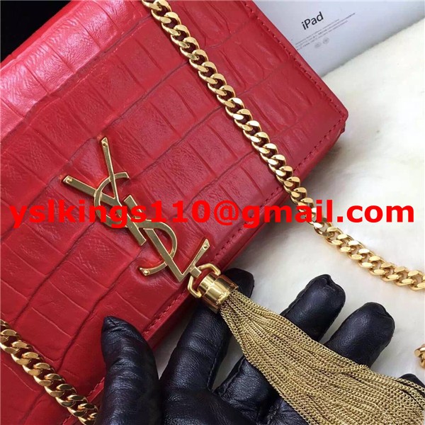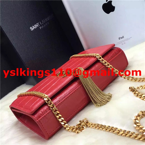 YSL Tassel Chain Bag 22cm Croco Red Gold
