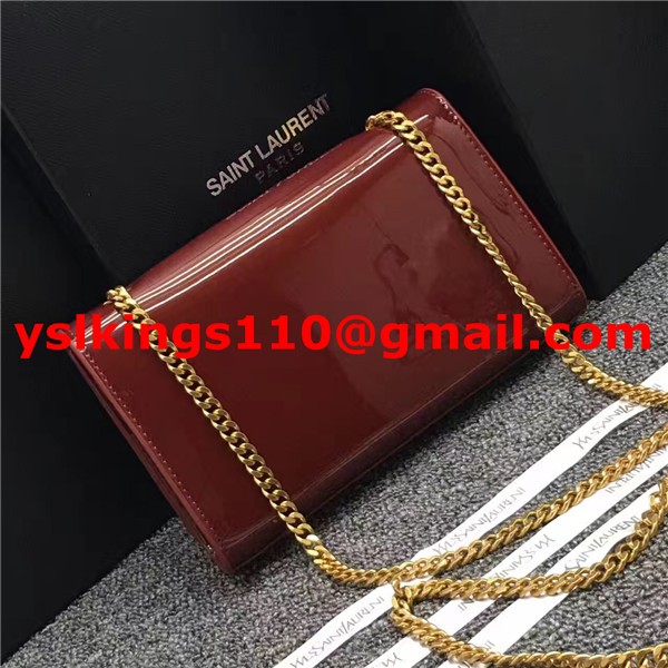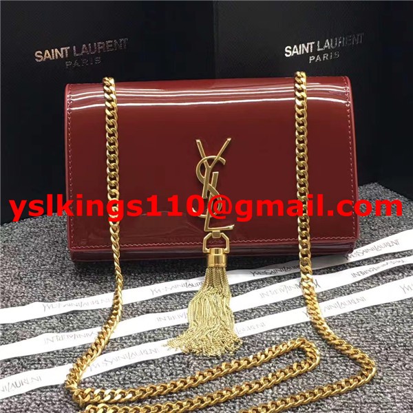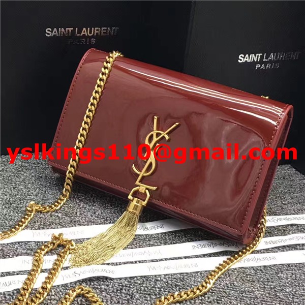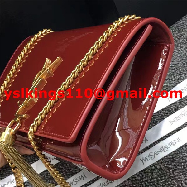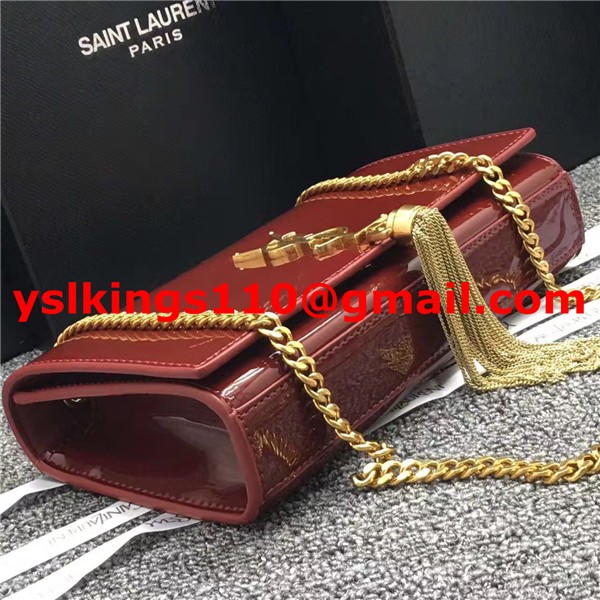 YSL Tassel Chain Bag 22cm Patent Leather Dark Red