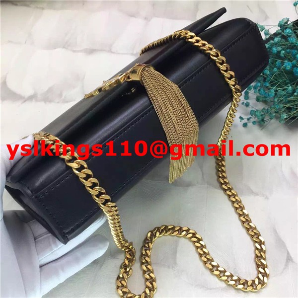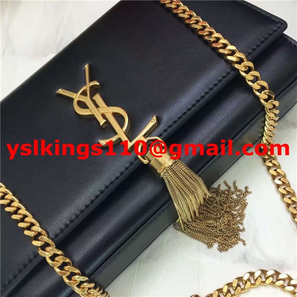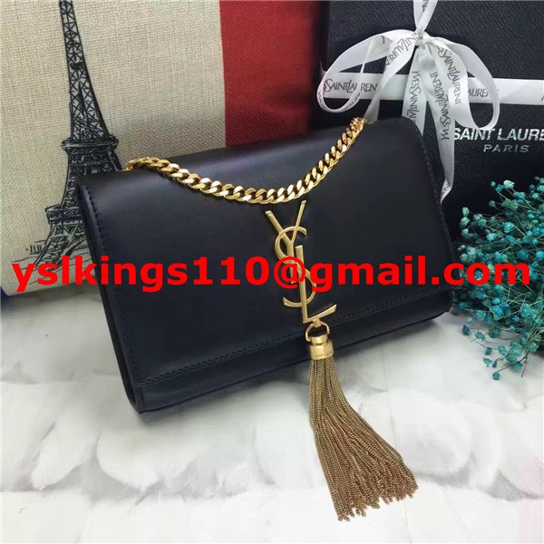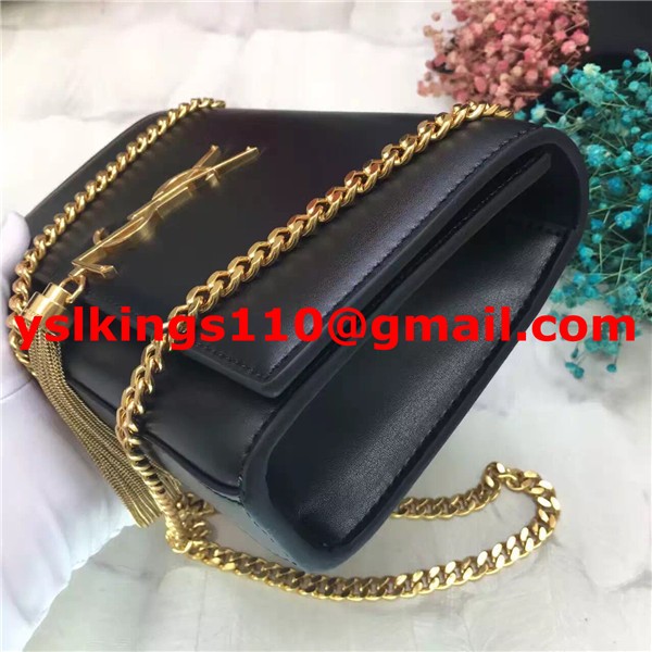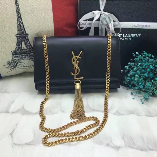 YSL Tassel Chain Bag 22cm Smooth Leather Black Gold
