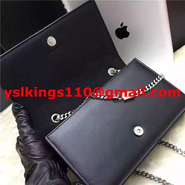 YSL Small Envelope Chain Bag Goatskin Black 18cm