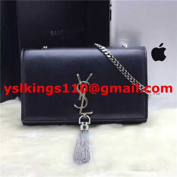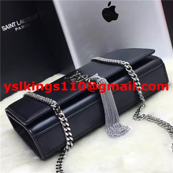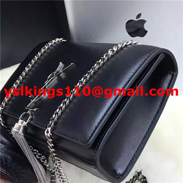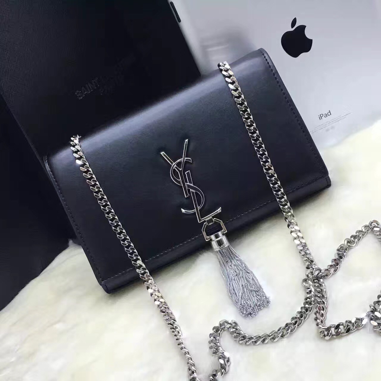 YSL Tassel Chain Bag 22cm Smooth Leather Black Silver