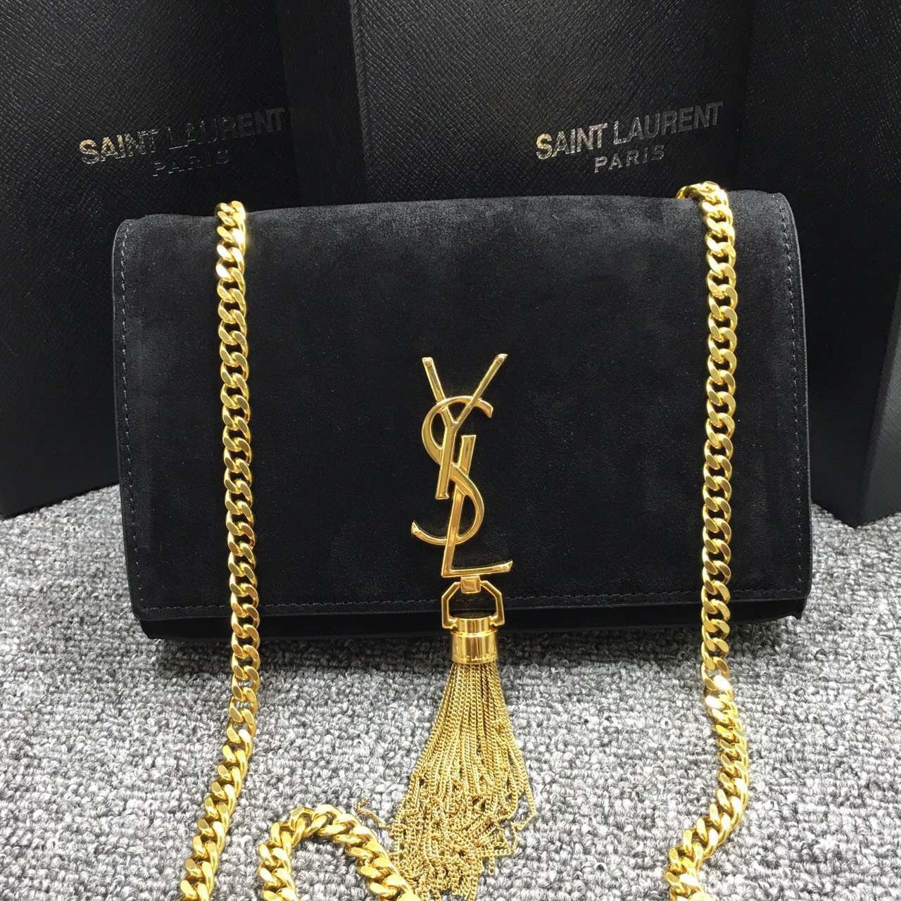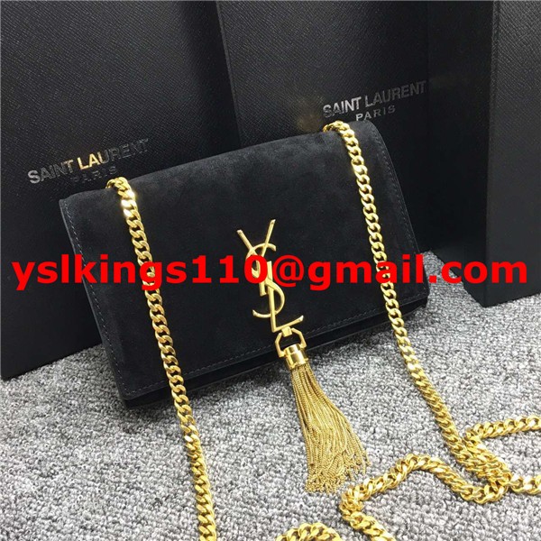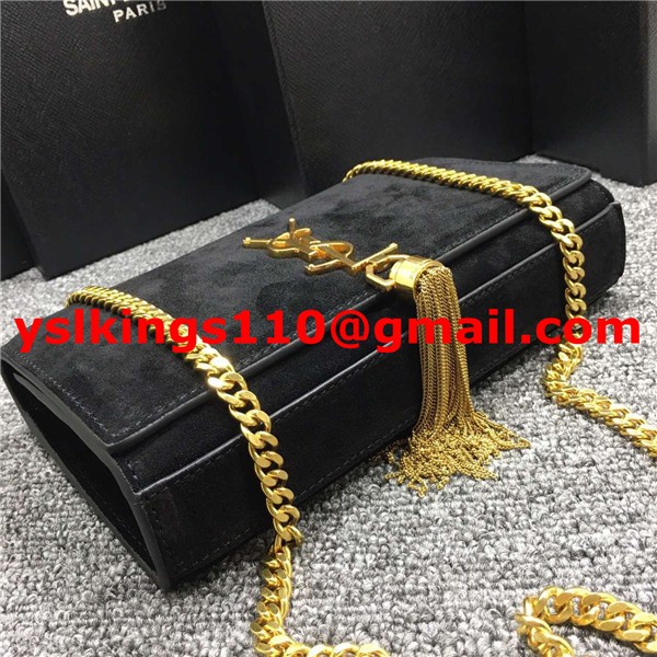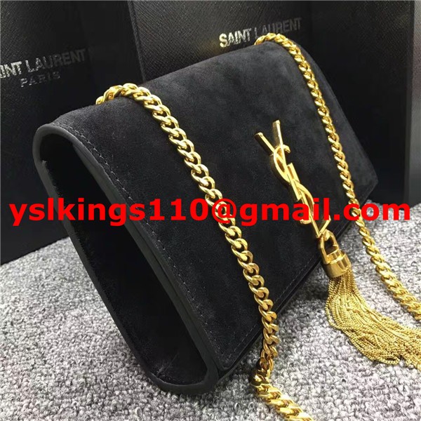 YSL Tassel Chain Bag 22cm Suede Leather Black
