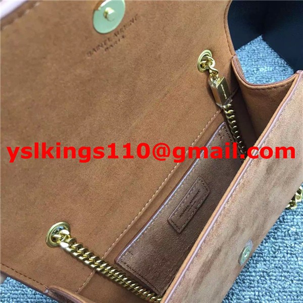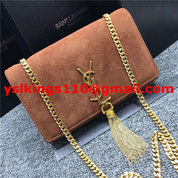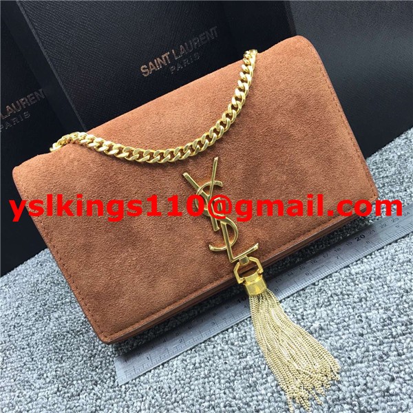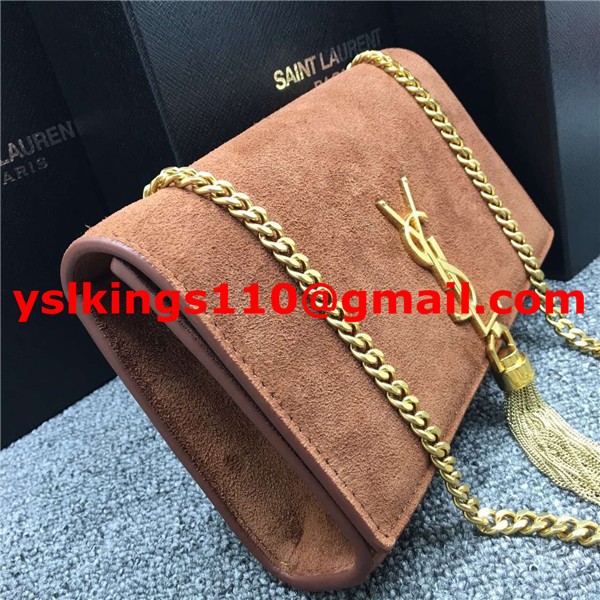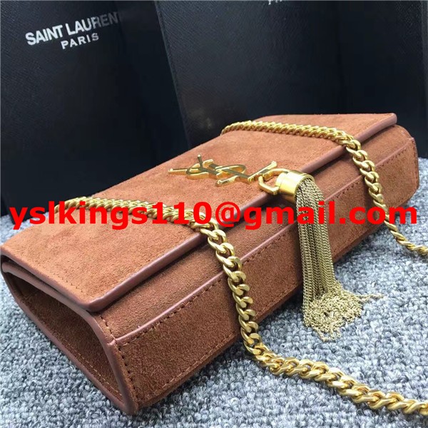 YSL Tassel Chain Bag 22cm Suede Leather Brown