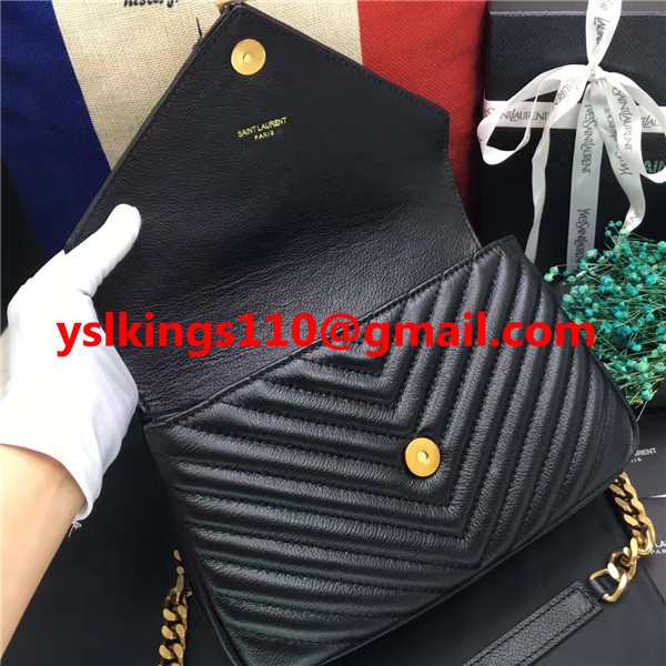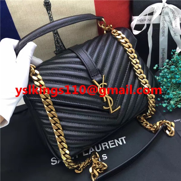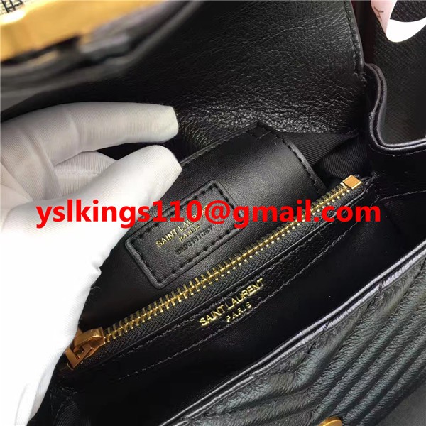 YSL Top Handle Shoulder Bag 24cm Black Gold