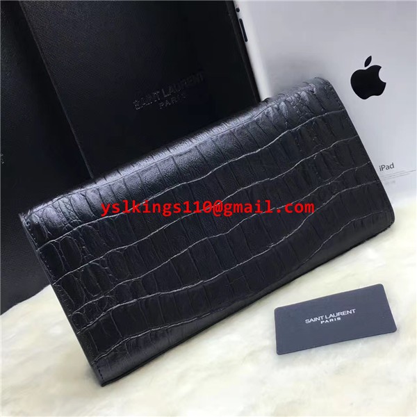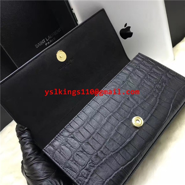 YSL Tassel Chain Bag 17cm Croco Black Silver