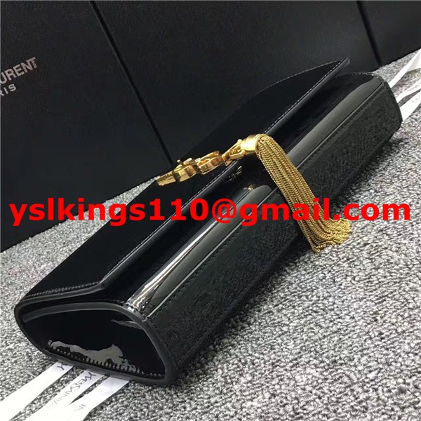 YSL Tassel Clutch 27cm Croco Leather Black Gold