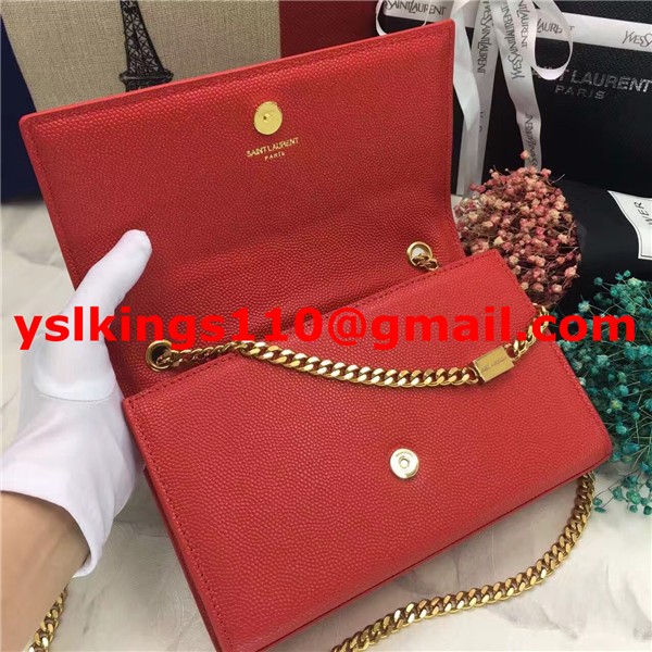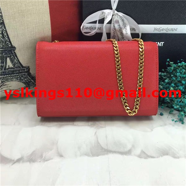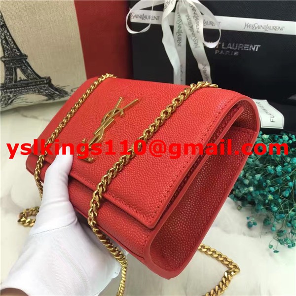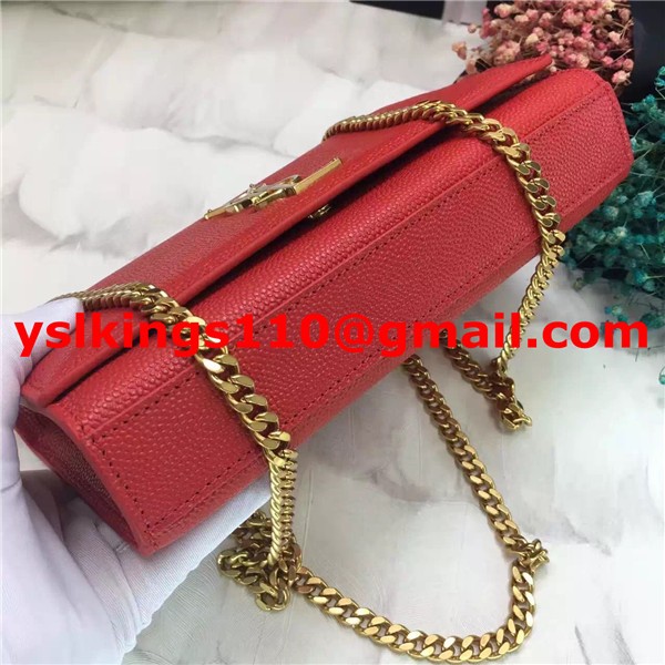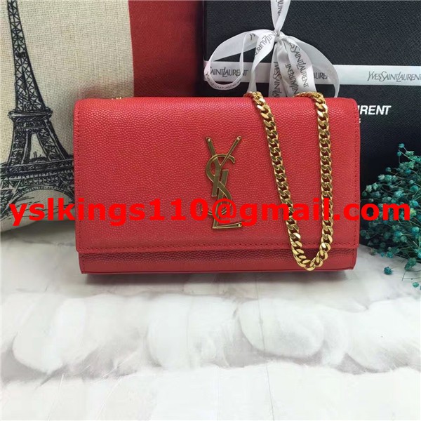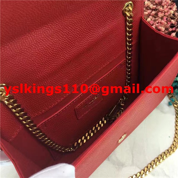 YSL Caviar Leather Chain Bag 22cm Red Gold