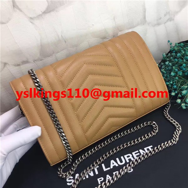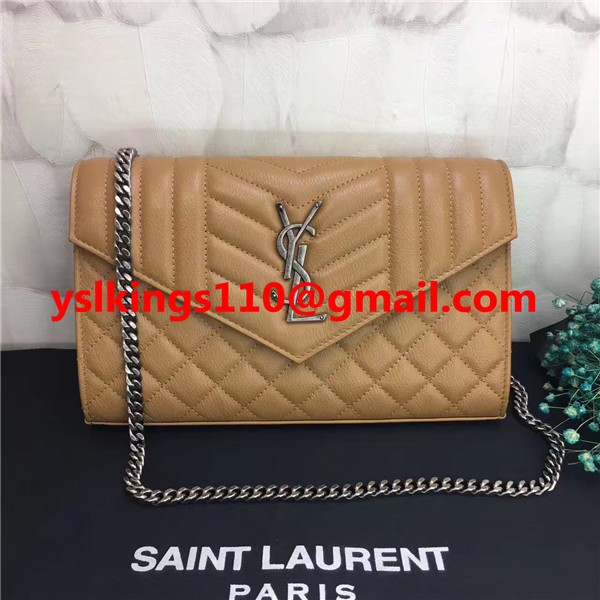 YSL Smooth Leather Chain Bag 22cm Apricot