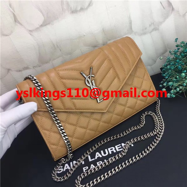 YSL Envelope Chain Bag Caviar Leather Rose 23cm