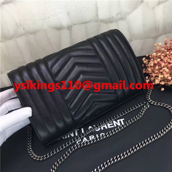 YSL Monogram Chain Bag 22cm Croco Black Silver
