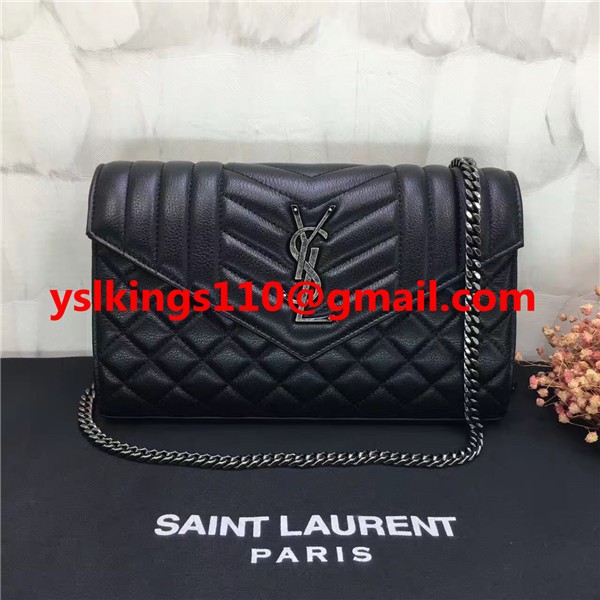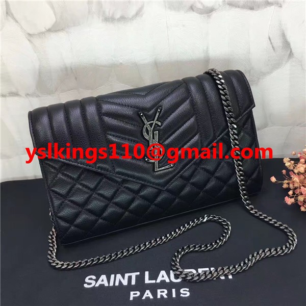 YSL Envelope Chain Bag Caviar Leather Blue 23cm