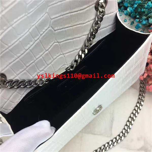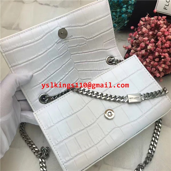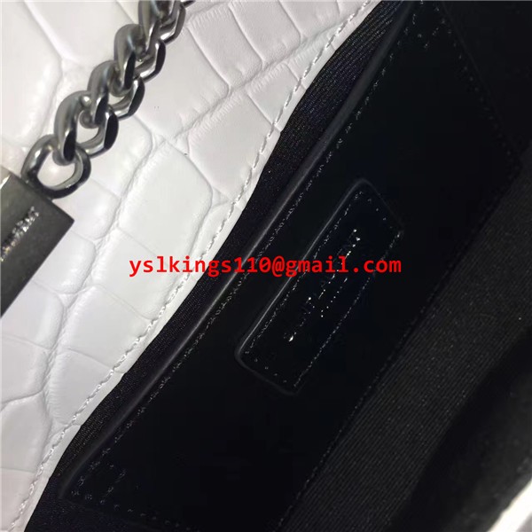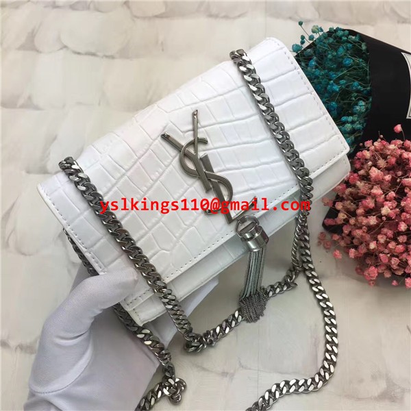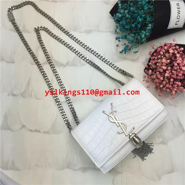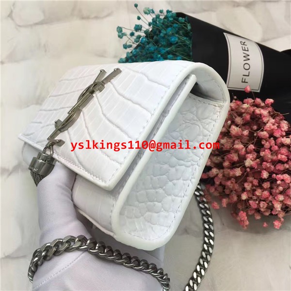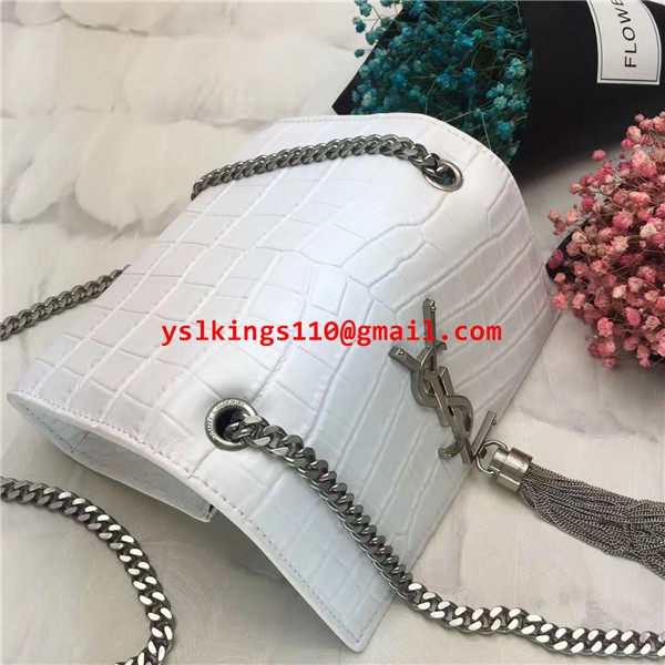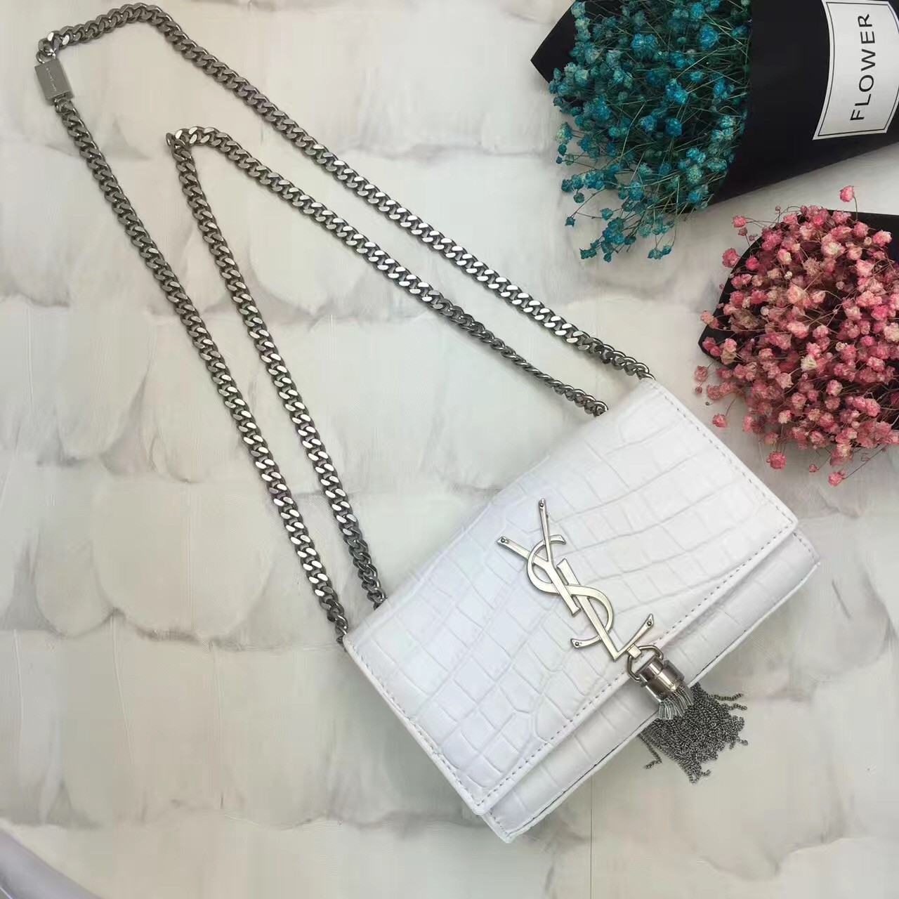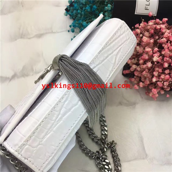 YSL Tassel Chain Bag 17cm Croco White Silver