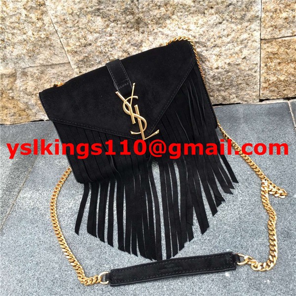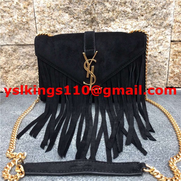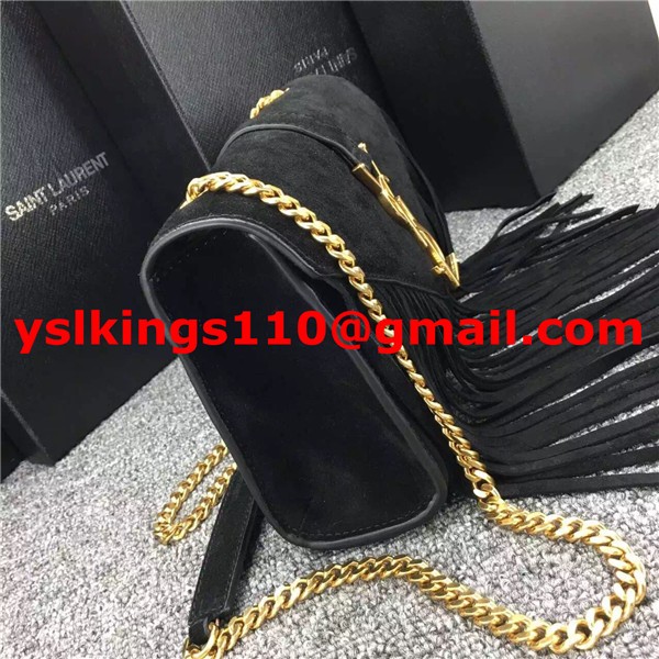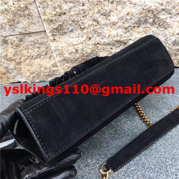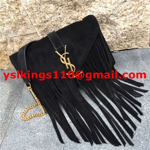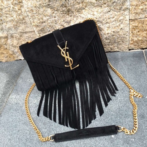 YSL Suede Leather Tassel 22cm Bag Black