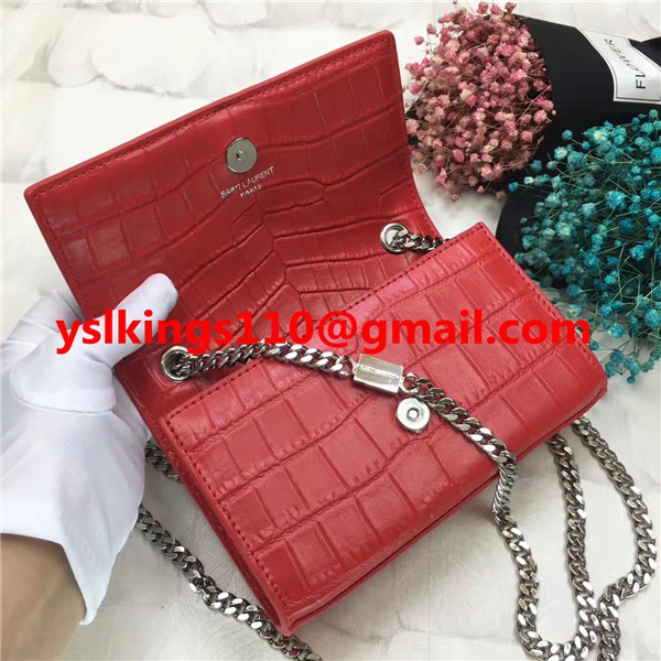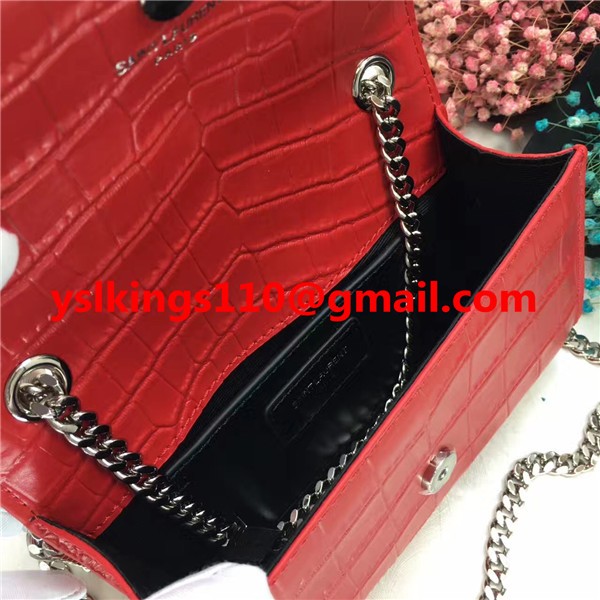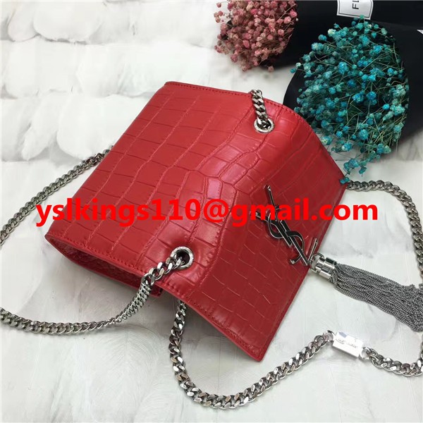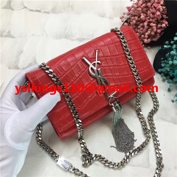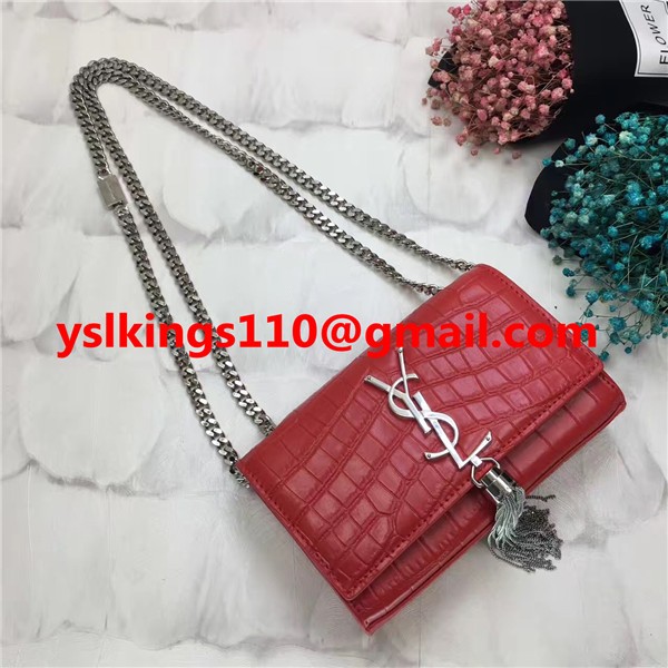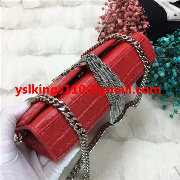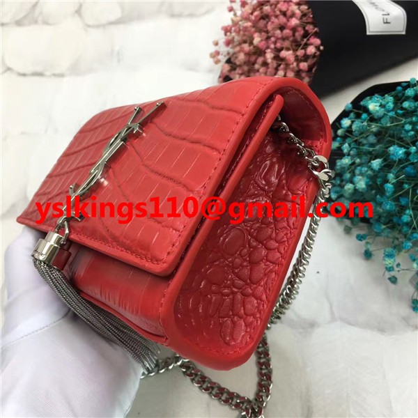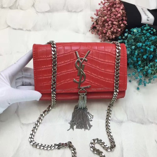 YSL Tassel Chain Bag 17cm Croco Red Silver