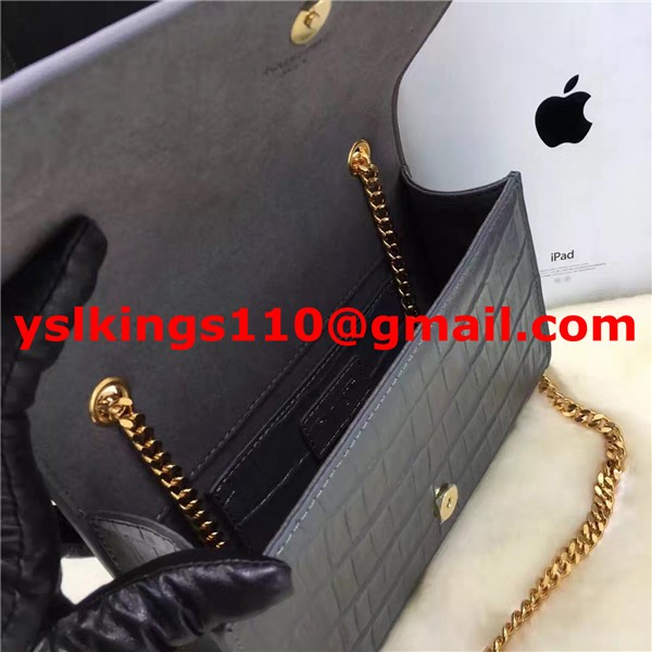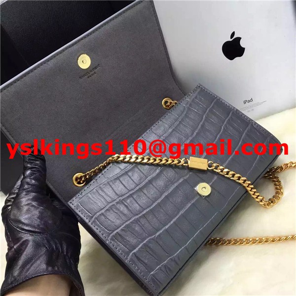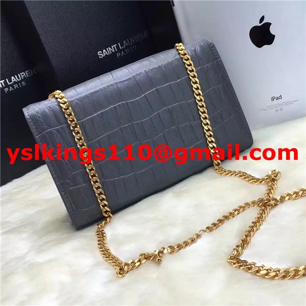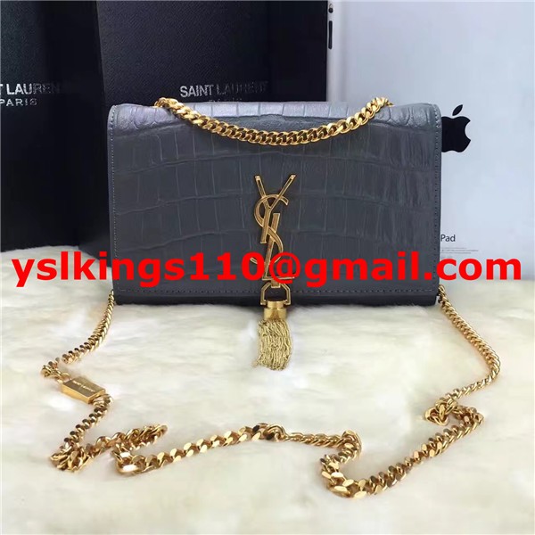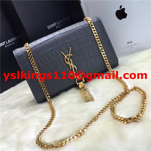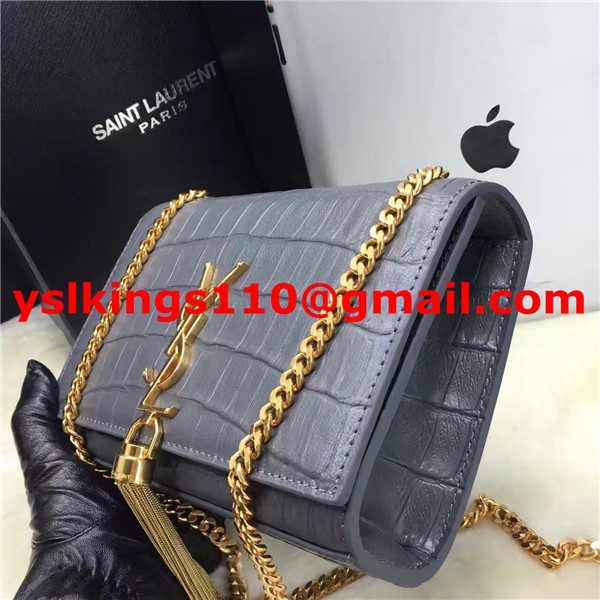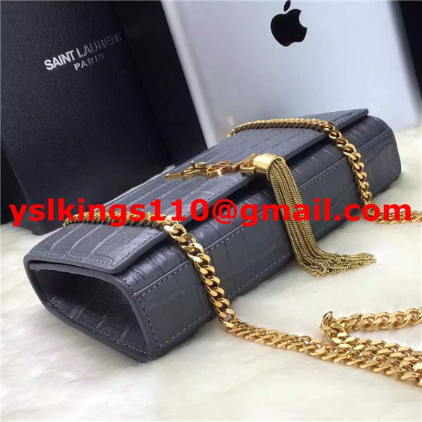 YSL Tassel Chain Bag 22cm Croco Grey Gold